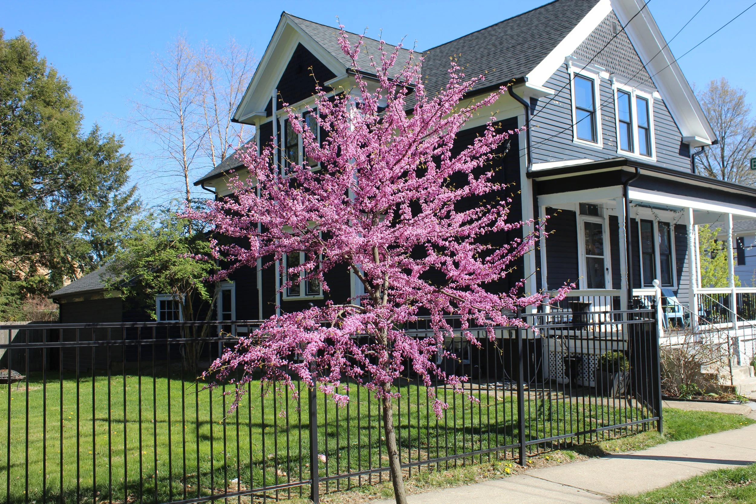 Description: One of the best native trees, the edible, purple pink flowers that emerge in early May are a joy to all who witness. Nice heart shaped leaves, yellow fall color and interesting bark are appreciated bonuses. Makes a nice yard tree, a true beauty when in peak spring bloom.