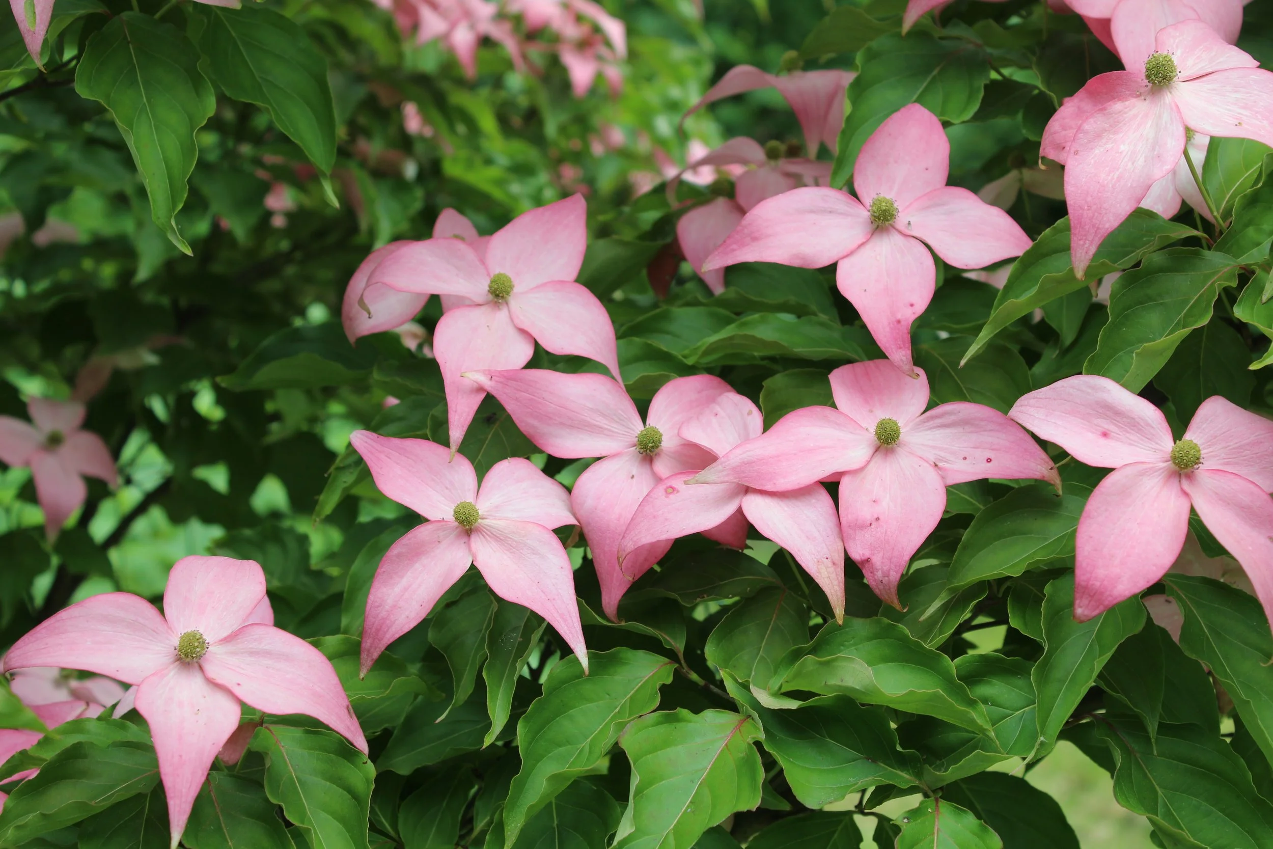 With its showy, true pink bracts that brighten the landscape in June, Scarlet Fire® is considered the best pink flowered form of Kousa dogwood in commerce. It has been a vigorous grower for us at our nursery, and has maintained clean foliage despite the intense heat and humidity this year. Best in full sun and well-drained soil.